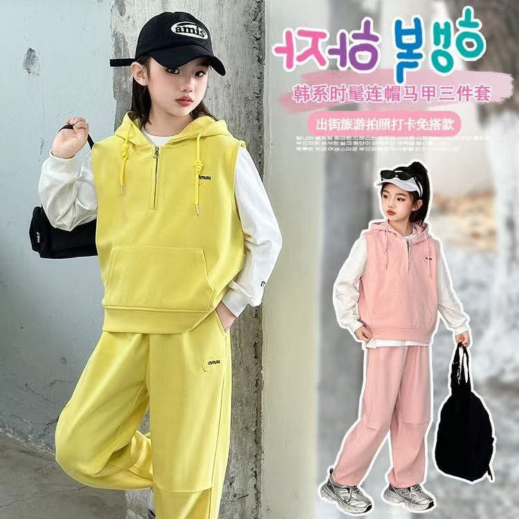 ست اسپرت سه تیکه (بلوز آستین بلند-شلوار-جلیقه کلاهدار)مناسب 6 تا 14 سال می باشد این لباس وارداتی می باشد این ست اسپرت و مناسب دختر و پسر می باشد
