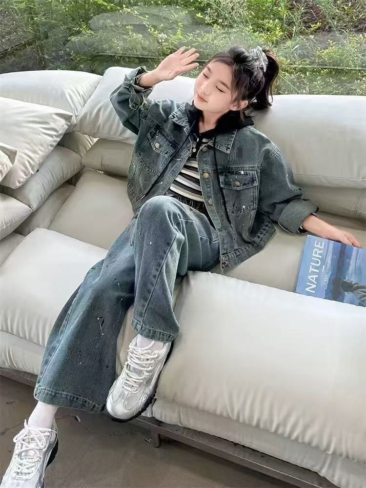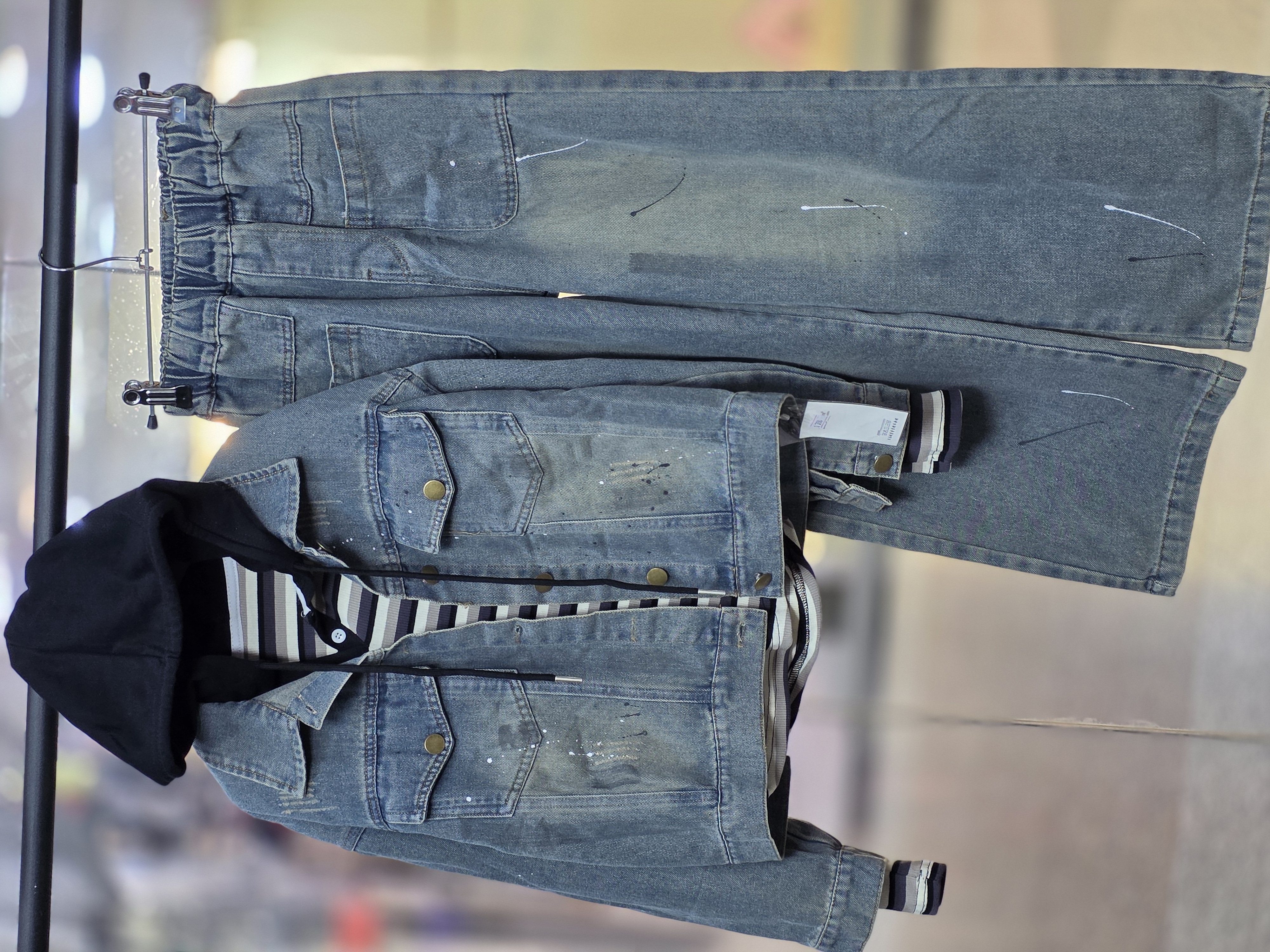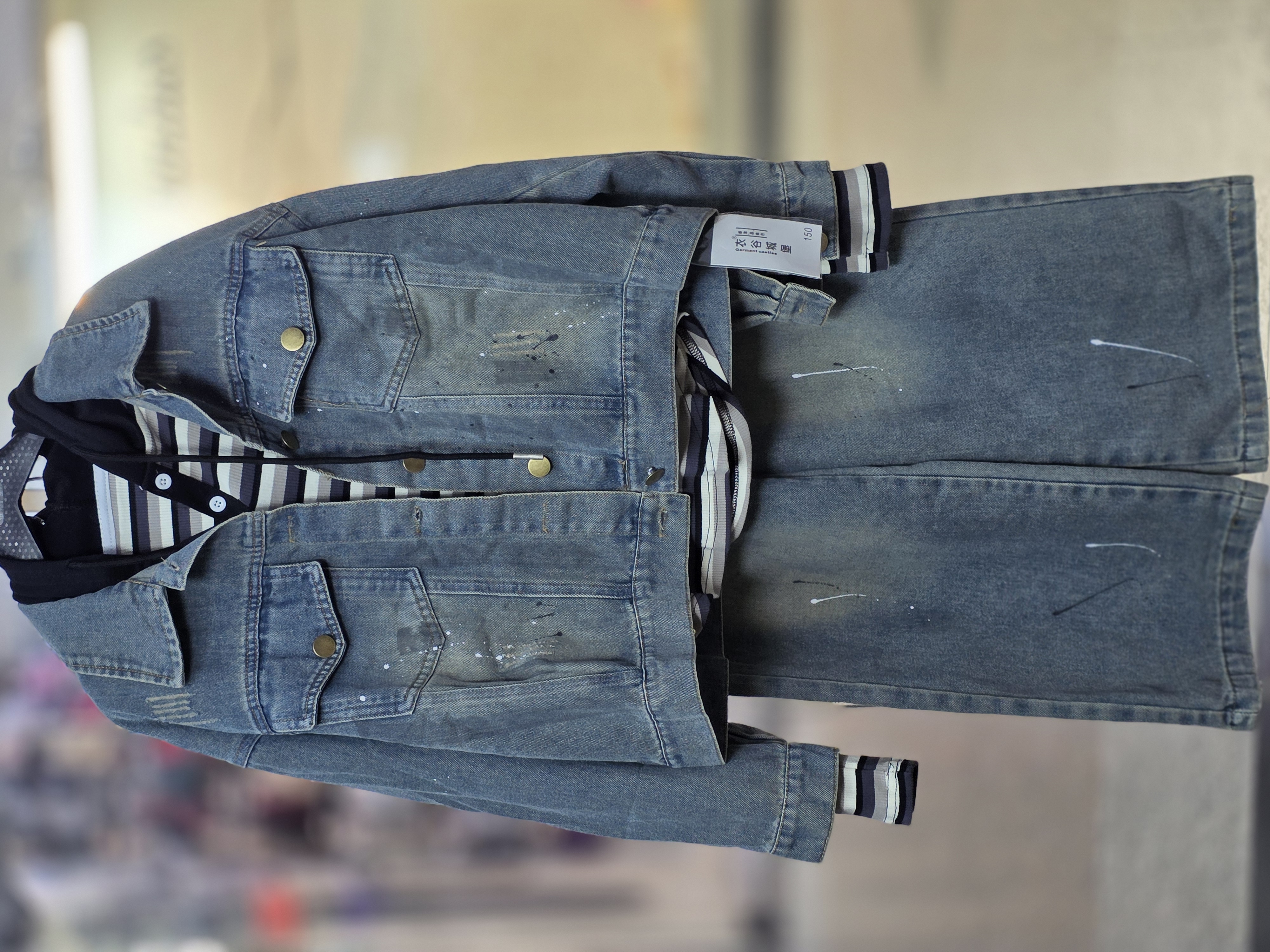 جنس پارچه این ست جین می باشد این لباس با کیفت بالا و قابل شستشو با دست و لباسشویی می باشد