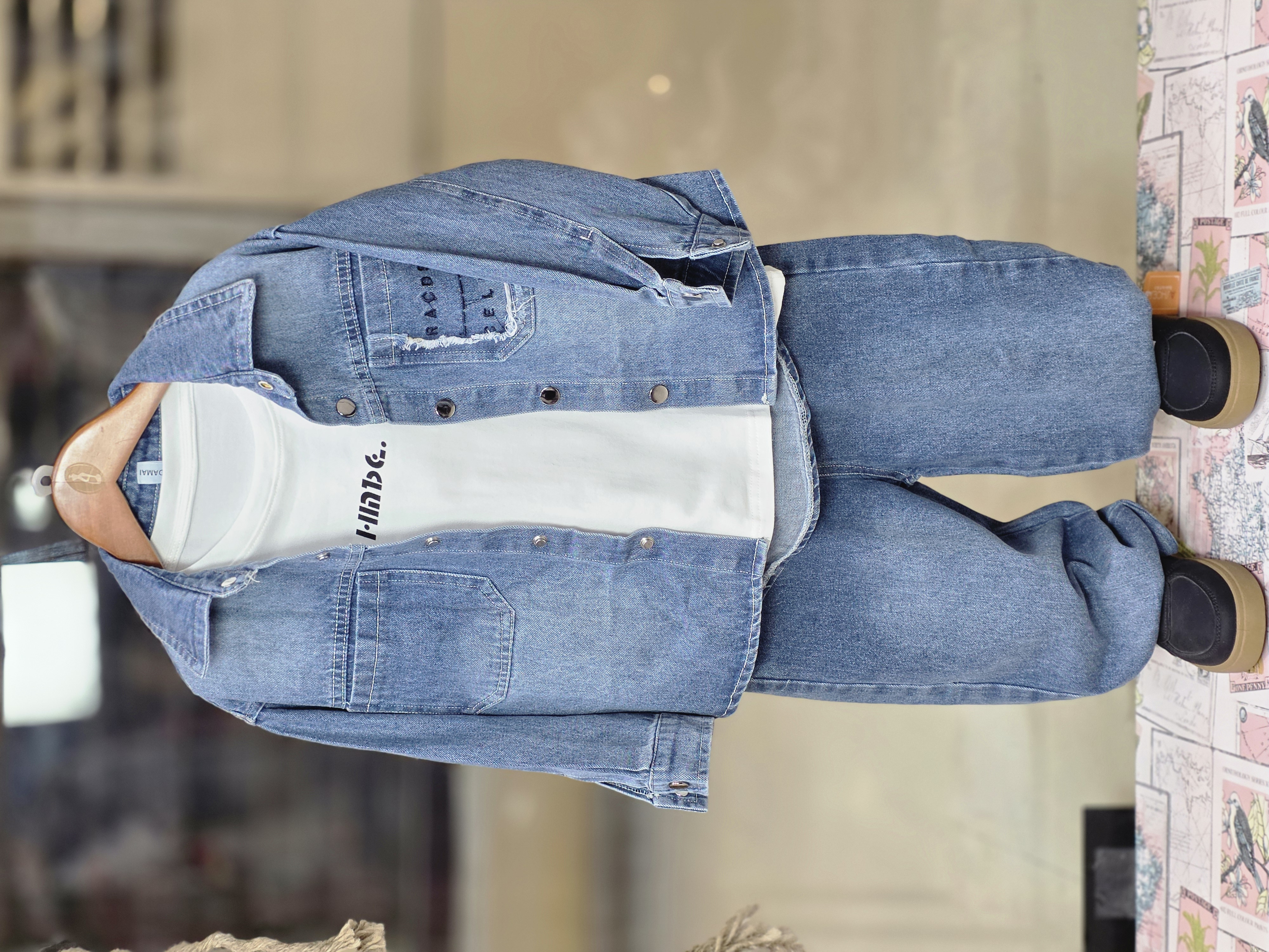 ست سه تیکه وارداتی کت و تی شرت با شلوار در رنگ بندی آبی و مشکی می باشد و مناسب ۱ تا ۶ سال و این کار بسیار با کیفیت و شیک می باشد
