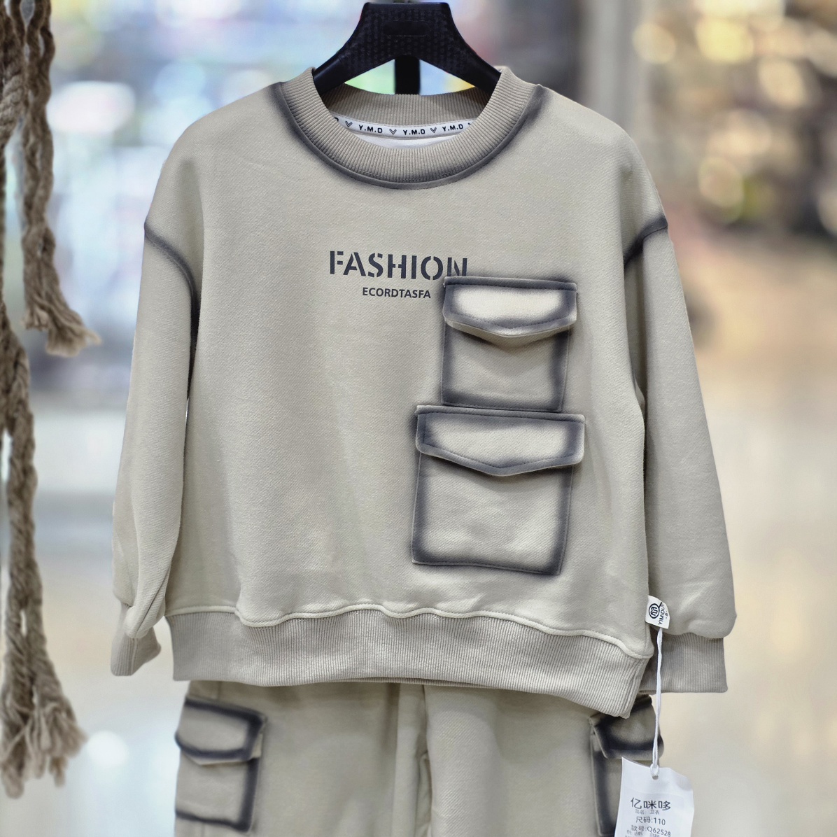 ست دو تیکه وارداتی دورس جیب دار با شلوار جاگر در رنگ بندی کرم و مناسب ۵ تا ۱۲ سال می باشد